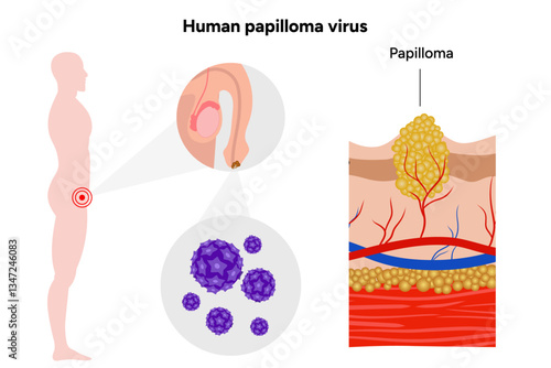 Human papilloma virus on reproductive system. Medical screening illustration in zoom
