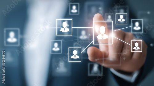 Human resource management technology (HR), Human resource manager touching human resource network structure and checks the CV online to choose the perfect employee for company, Effective recruitment