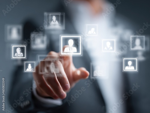 Human resource technology, HR recruitment and team management, Human resource manager reviewing online CVs to select perfect candidate for employment using digital technology and networking tools