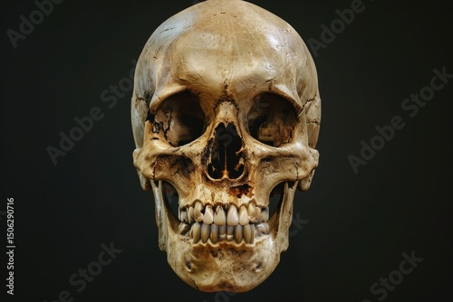 Human Skull with Missing Jaw and Teeth Depicting Anatomy or Forensic Science
