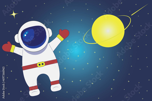 Human Space Flight banner background. Figure of an astronaut in space. Vector illustration