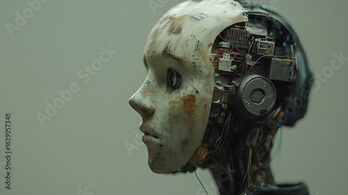 Humanoid Robot Head Profile with Visible Circuitry and Mask