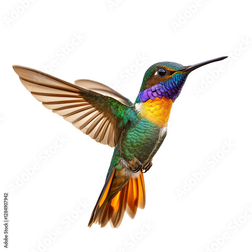 Hummingbird - Golden tailed sapphire. flying Golden tailed sapphire hummingbird with colorful glossy plumage