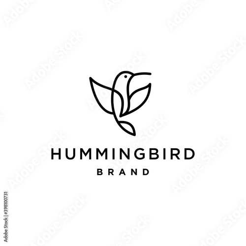 hummingbird colibri bird with leaf nature logo icon line abstract outline monoline vector illustration