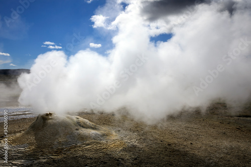 Hveravellir / Iceland - August 25, 2017: Fumarole and sulfur area at Hveravellir near the Kjolur Highland Road, Iceland, Europe