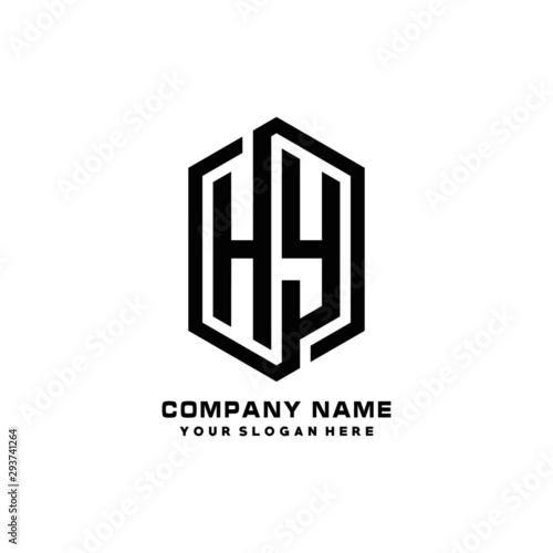 HY initials business abstract logo in the shape of a hexagon, with a thick line connected around the letters