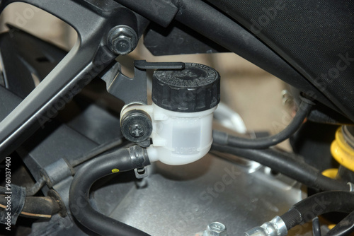 hydraulic fluid reservoir in the rear brake system of a motorcycle