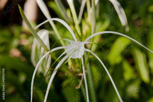 Hymenocallis plant with white beautiful Flower. Spider Lily. Tropical Flowers in Thailand.