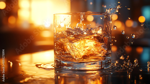 Hyperrealistic Glass of Water with Artistic Reflections