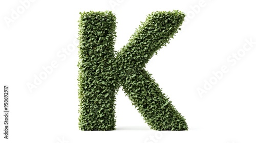 Hyper-Realistic Green Topiary Letter "K" Isolated on a White Background, Ideal for Eco-Friendly and Nature-Inspired Design Concepts