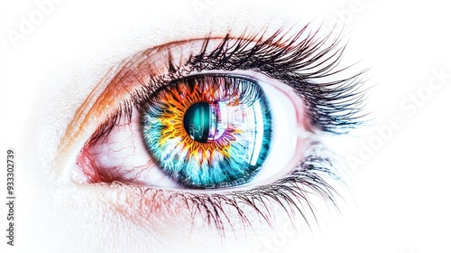 Hyper-Realistic Human Eye Anatomy with Holographic Iris on White Background in 32K Resolution, Mixed Media Artwork, Generative Ai
