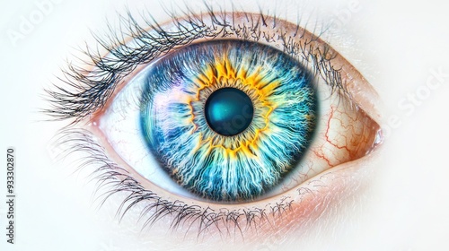 Hyper-Realistic Human Eye Anatomy with Holographic Iris on White Background in 32K Resolution, Mixed Media Artwork, Generative Ai