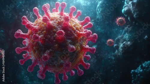 Hyper-realistic Red Coronavirus Virion Illuminated in a Dark, Blue Microscopic World