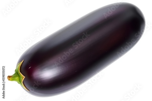 Hyperrealistic Single Dark Purple Eggplant with Glossy Texture on White Isolated Background