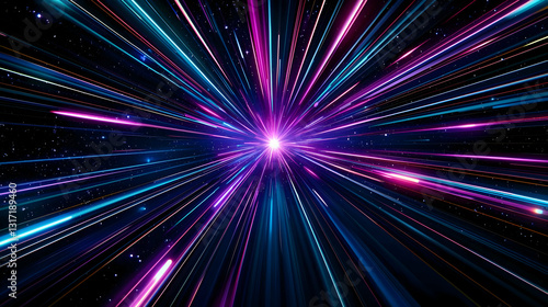 Hyperspace Jump Through a Colorful Wormhole with Bright Streaks of Light on a Dark Background Digital Art