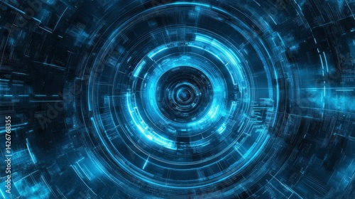 Hyperspace tunnel of interconnected rings, glowing with blue light.