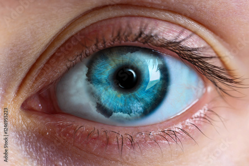 Hypnosis. Hypnotic clouds in woman's eye, closeup