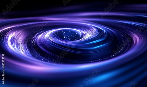Hypnotic swirling vortex with glowing purple and blue lights resembling a galaxy perfect for sci-fi themes, tech backgrounds, or abstract art,