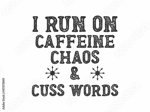 I run on caffeine chaos and cuss words Funny and sarcastic adult T-shirt design with bold text perfect for humor lovers and edgy merchandise