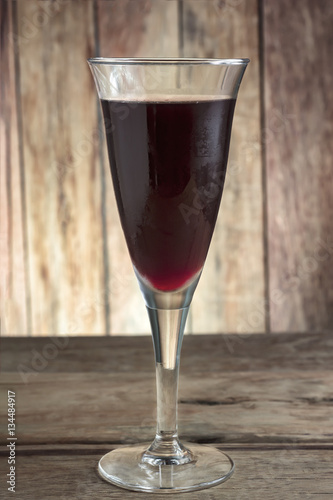 Ice Cocktail glass on a wooden table.