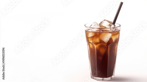 Ice coffee in glass with straw on white background.