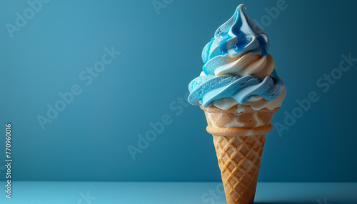 Ice cream cone: vanilla swirl, blue syrup, perfect treat.generative ai