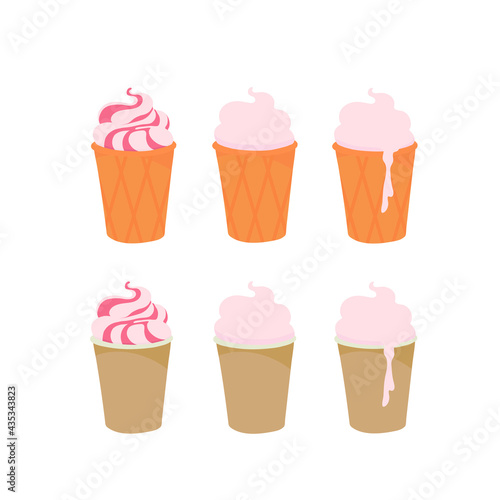 Ice cream in a cup. Waffle cup. Outline vector illustration on a white background.