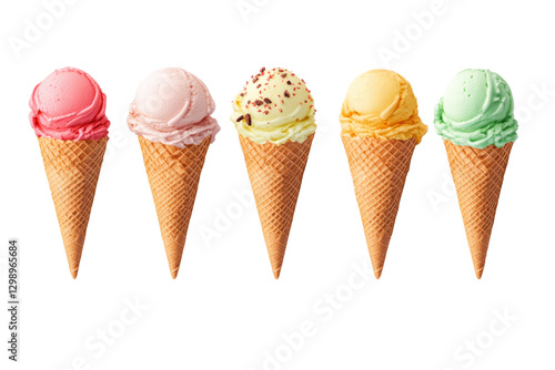 Ice cream scoop on waffle cone isolated on transparent or white background, png