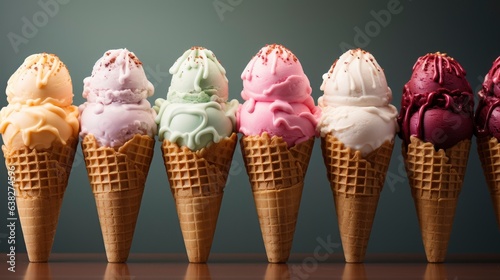 Ice cream scoop on waffle cone. Many assorted different flavour Mockup template for artwork design