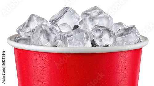 Ice cube in red cup isolated on transparent background with cold refreshing feeling