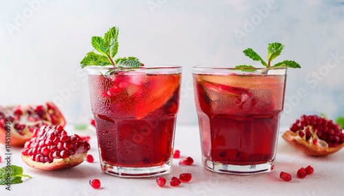 Ice Pomegranate tea or cocktail with mint and Pomegranate, a recipe for a refreshing summer. ai generator
