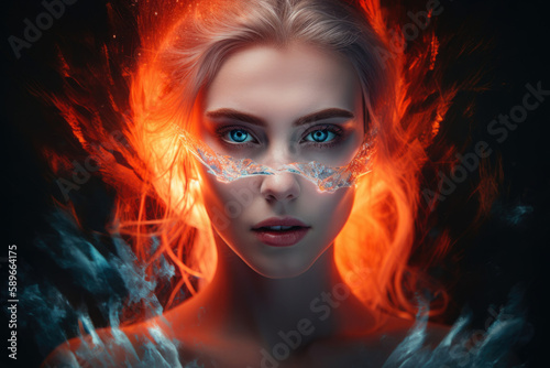 Ice Queen Woman Portrait with a Fiery Gaze, generative ai