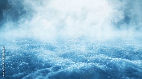 Ice. Winter background. Blue ice floor texture and mist. Snow and ice background
