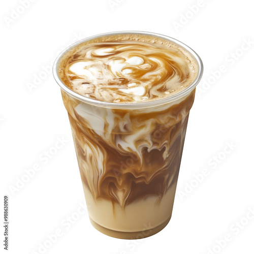 iced coffee with caramel sauce isolated in transparent on white background