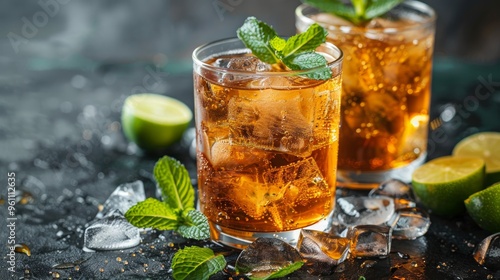iced honey and lime soda with mint - refreshing drink