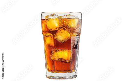 Iced tea in a glass with ice cubes refreshing drink summer beverage amber liquid cold refreshment, isolated on a transparent background