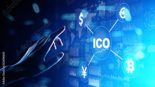 ICO - Initial coin offering, Fintech, Financial and cryptocurrency trading concept on virtual screen. Business and technology.