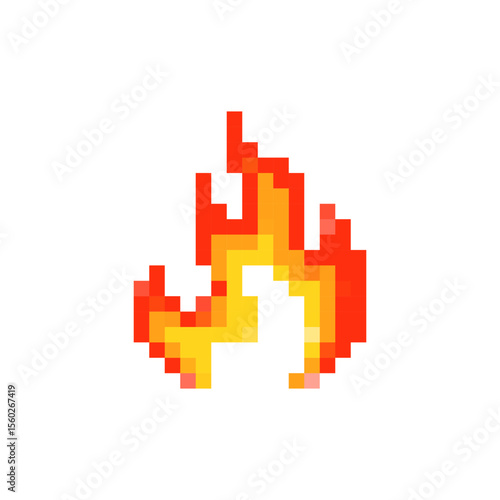 Icon features a stylized flame with orange and yellow tones. depicted in a pixel art format.
