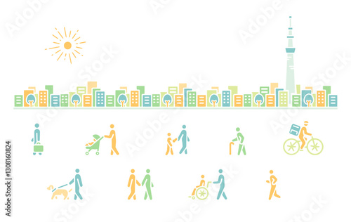 Icon illustrations of various people living in Tokyo