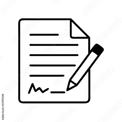 Icon of a document being signed or edited with a pencil