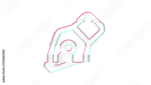 Icon pen nib is distorted. Glitch. Noise, chromatic aberration, geometric distortion