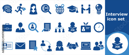 Icon set of interview, communication, career, profession, selection, fairness, employee, skills, professional, assessment, solution, recruitment, search, negotiation, talent, employer and more
