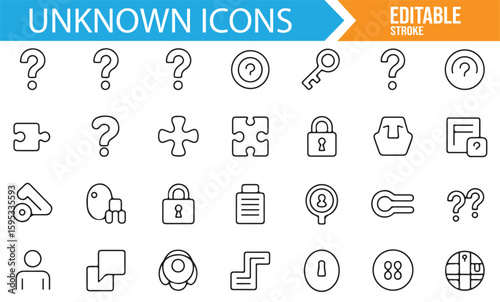 Icon Set Representing Unknown, Security, and Problem-Solving Concepts
