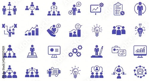 Icon sets for business themes like teamwork, growth, and innovation