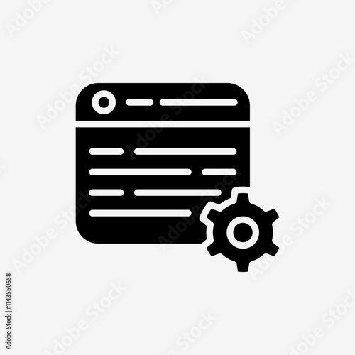 Icon Solid Black gear setting web browser. Technology and system concept, Glyph style.