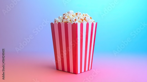 Iconic red and white striped popcorn box centered on a colorful gradient, perfect for entertainment blogs or snack ads.