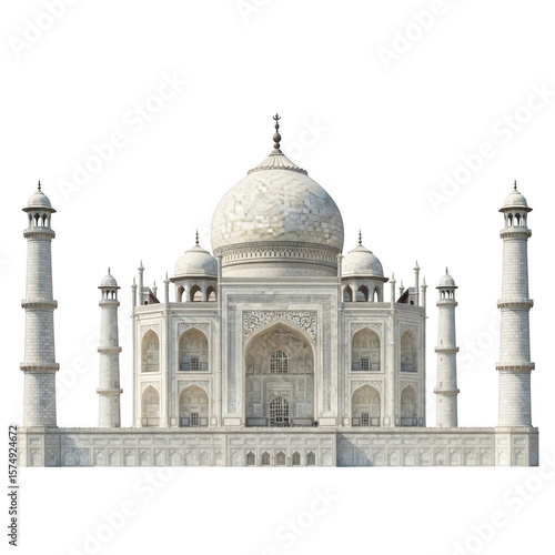 Iconic taj mahal mausoleum architecture in white marble isolated on transparent background