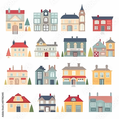 Icons of houses and buildings isolated on white. Illustration in vector format