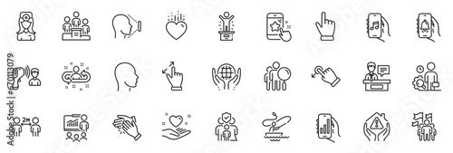 Icons pack as Search people, Touchscreen gesture and Winner podium line icons for app include Hold heart, Organic tested, Electronic thermometer outline thin icon web set. Vector