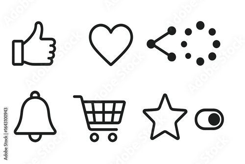 Icons representing social media interactions and shopping activities in a minimalistic design on a light background